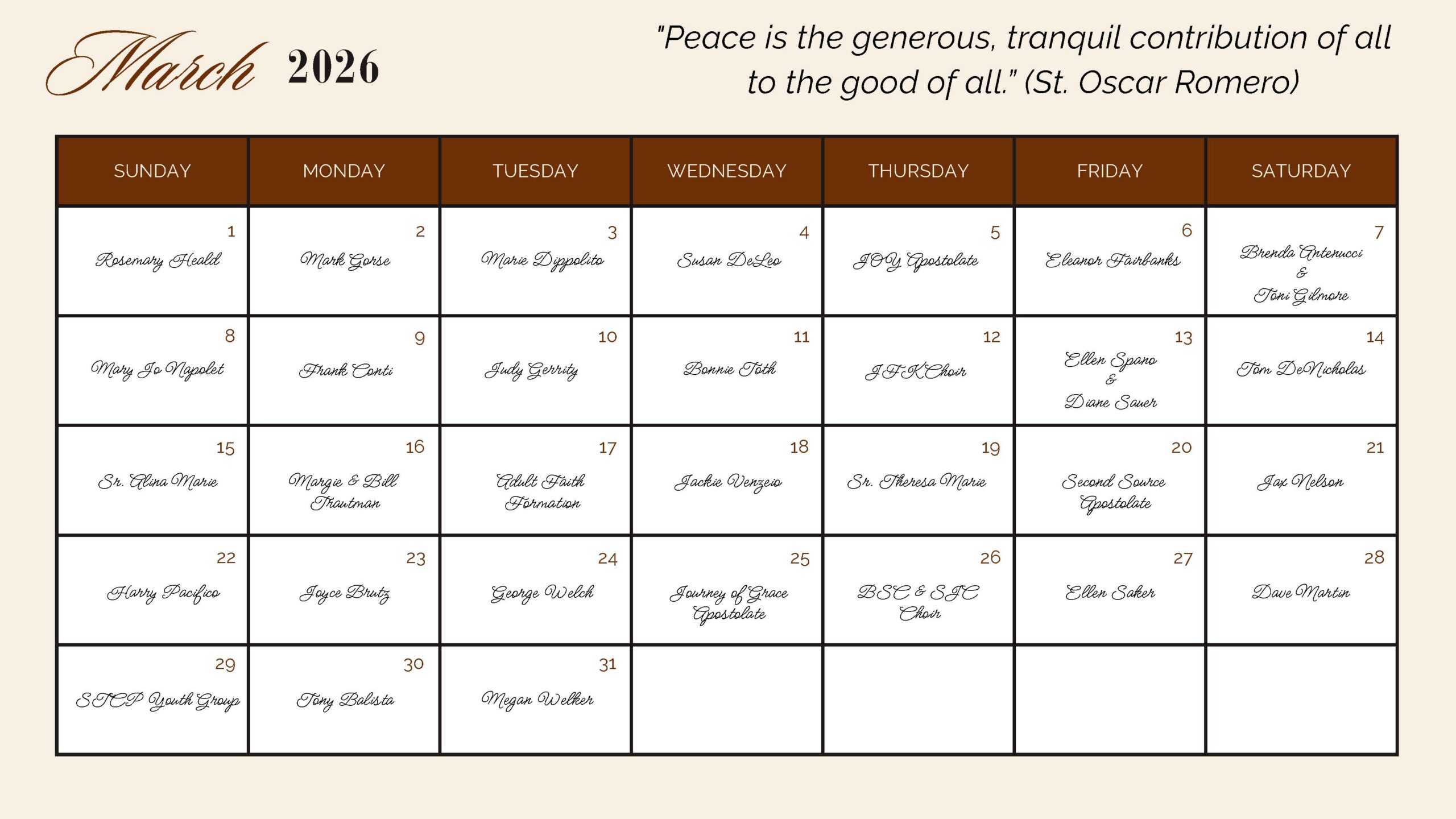 Stay up to date with what is happening at St. Teresa of Calcutta Parish. Each week we will send you an email update with a link to the current week's bulletin.